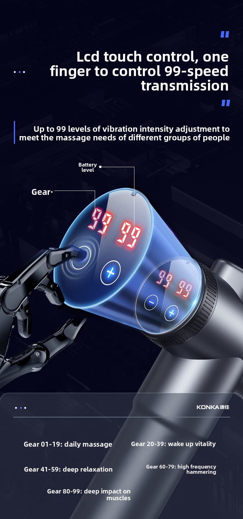 Speed Settings: Multiple gear options (1-99 levels available)